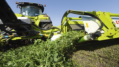 Dzięki czujnikowi nachylenia na koźle zaczepu nacisk na podłoże (ACTIVE FLOAT) i prędkość taśm samoczynnie dopasowują się do aktualnego nachylenia zbocza. Korzystając z terminala, można komfortowo ustawić żądaną zmianę nacisku w zależności od stopnia nachylenia zbocza. Pozwala to na odciążenie operatora i poprawę jakości pracy. Ponadto zmienione siły tarcia zapobiegają ściąganiu na zboczach, co przyczynia się do ochrony darni. Rezultatem jest optymalny kształt pokosu podczas jazdy w poprzek zbocza i zminimalizowane ryzyko tworzenia się pasm lub zabrudzenia paszy.